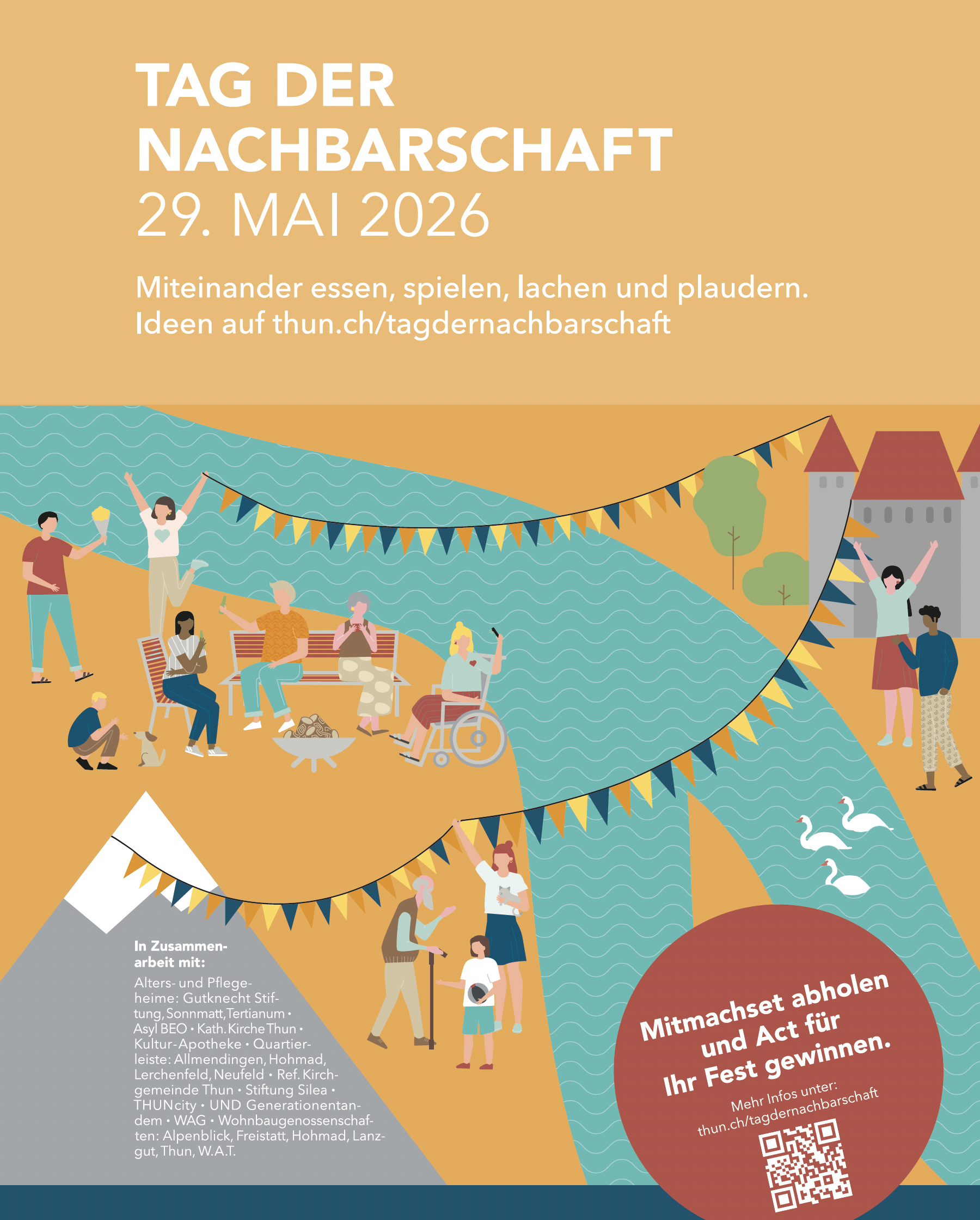 Am Freitag, 29. Mai 2026, begeht die Stadt Thun zum fünften Mal den Tag der Nachbarschaft. Mit dem Tag der Nachbarschaft will die Stadt das generationenübergreifende...